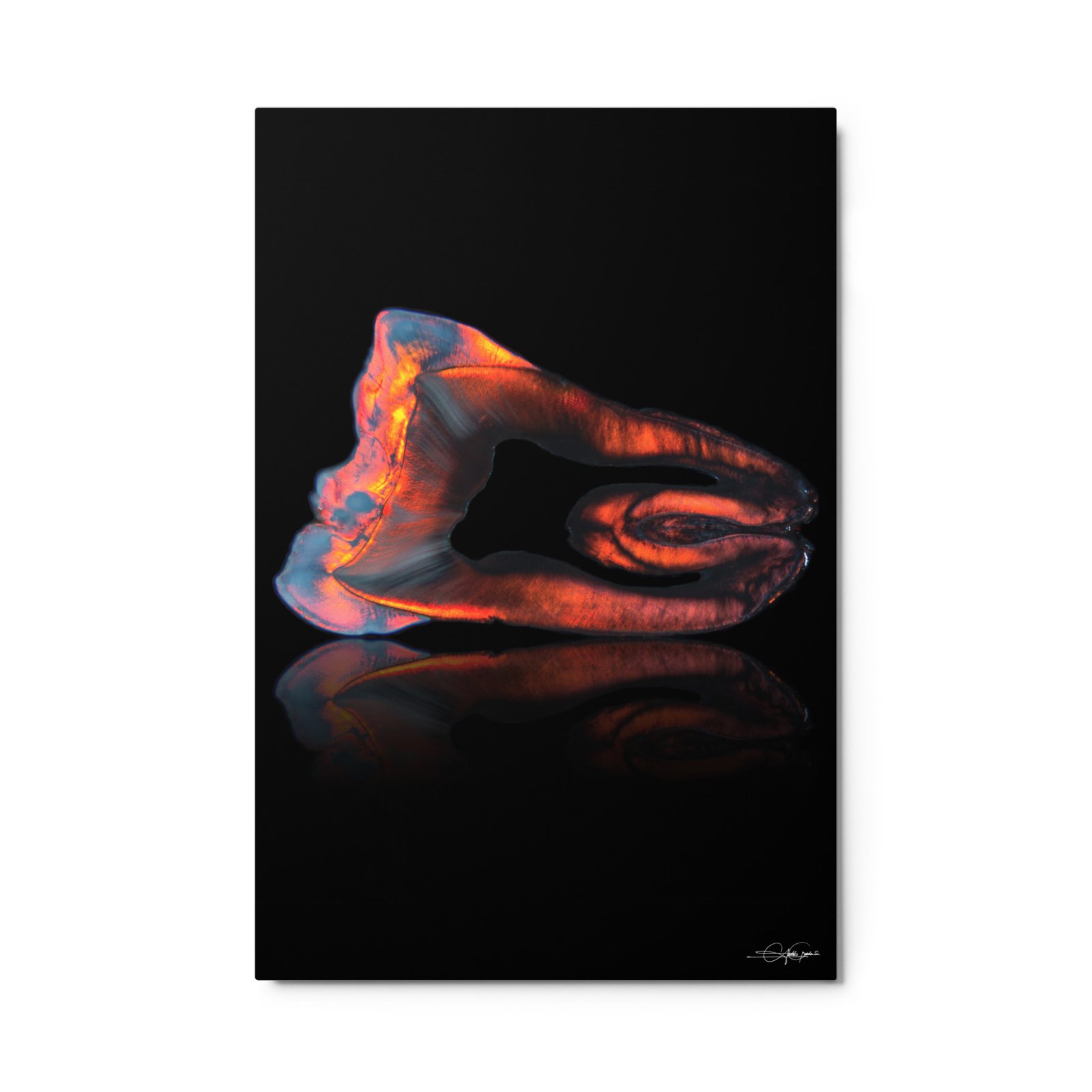 This metal print is a dimensional and high-quality piece of art that stands the test of time while remaining easy to clean and care for. The artwork looks luminescent against the wall and the metal base means it’ll last a long time.